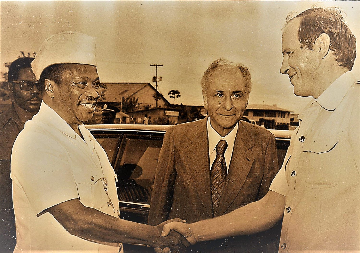 Bildet ble tatt for over 41 år siden. Jeg ønsker His Excellency William R. Tolbert, Liberias president, velkommen til Cemenco i Monrovia som jeg var sjef for i nesten fire år. Mannen i midten var Fouad Khalifa, tidligere eier av Cemenco. Det er nesten som det var i går.